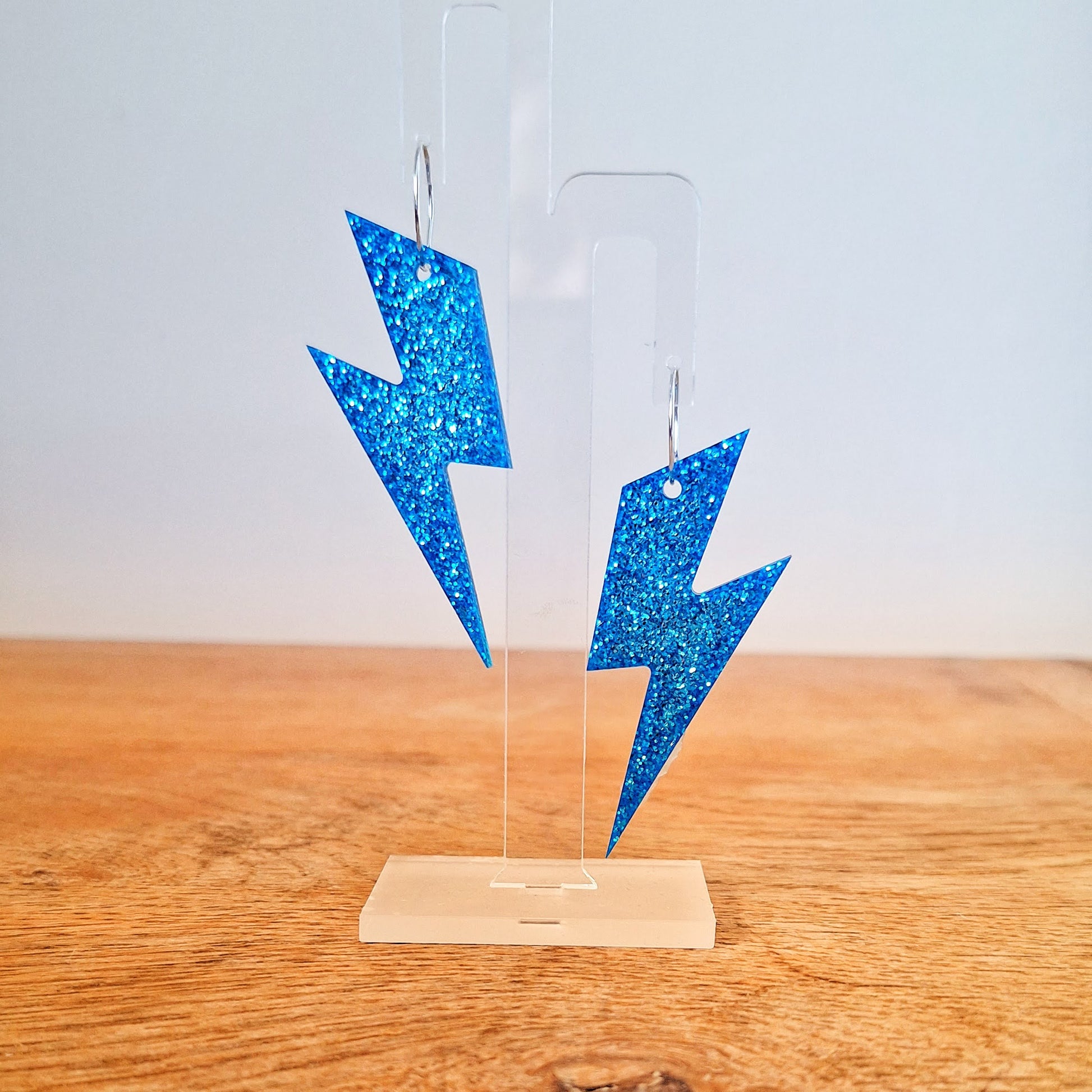 Aladdin Sane earrings, lightning bolt earrings, Bowie earrings, statement earrings, resin earrings, handmade jewellery, unique earrings, quirky jewellery, gold hoop earrings, silver hoop earrings, handmade earrings Ireland, one of a kind earrings