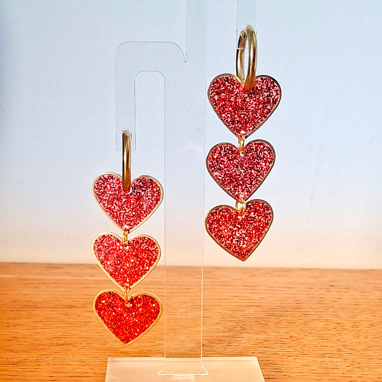 All Heart is bold, sparkly and gloriously unapologetic — three red glitter resin hearts stacked together like they’ve got opinions and no intention of keeping them to themselves.
