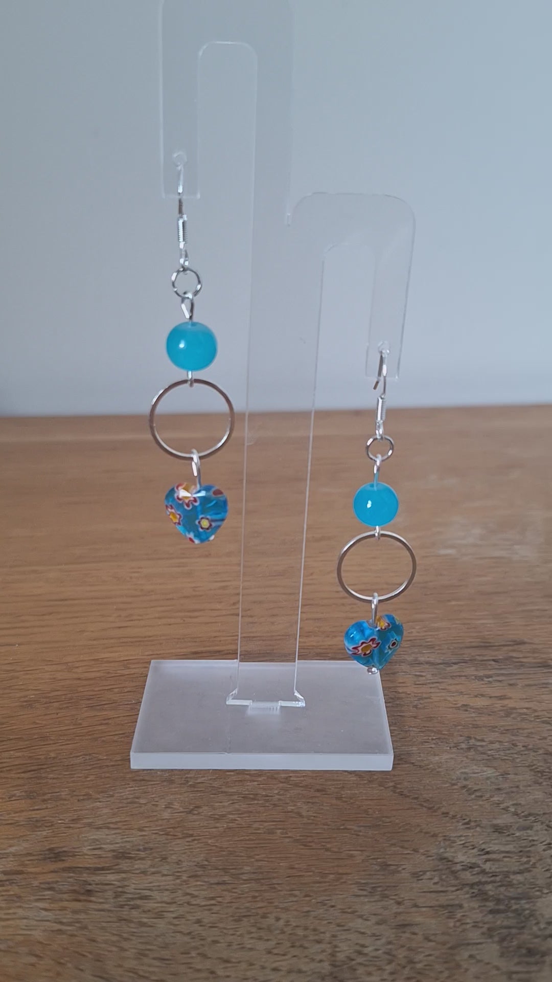 Unleash your playful side with these Azzurra Heart Earrings! These unique earrings are crafted from repurposed blue glass beads and adorned with a millefiori glass heart. The sterling silver ear wires add a touch of sophistication to this quirky design. Perfect for adding a unique touch to any outfit.