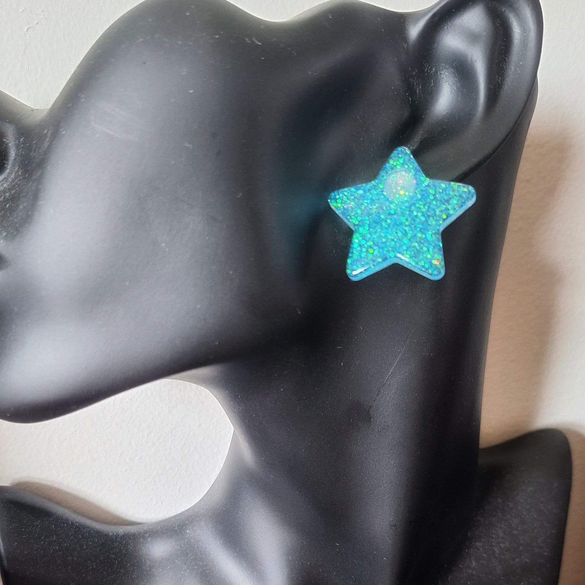 Add a touch of celestial charm to your outfit with our Bellatrix Blue Star Studs. Handmade from resin, these unique earrings come in two sizes - 30mm for a statement look and 80mm for a more delicate feel. Plus, the hypoallergenic stainless steel studs make them suitable for even the most sensitive ears. Reach for the stars with these stylish studs!