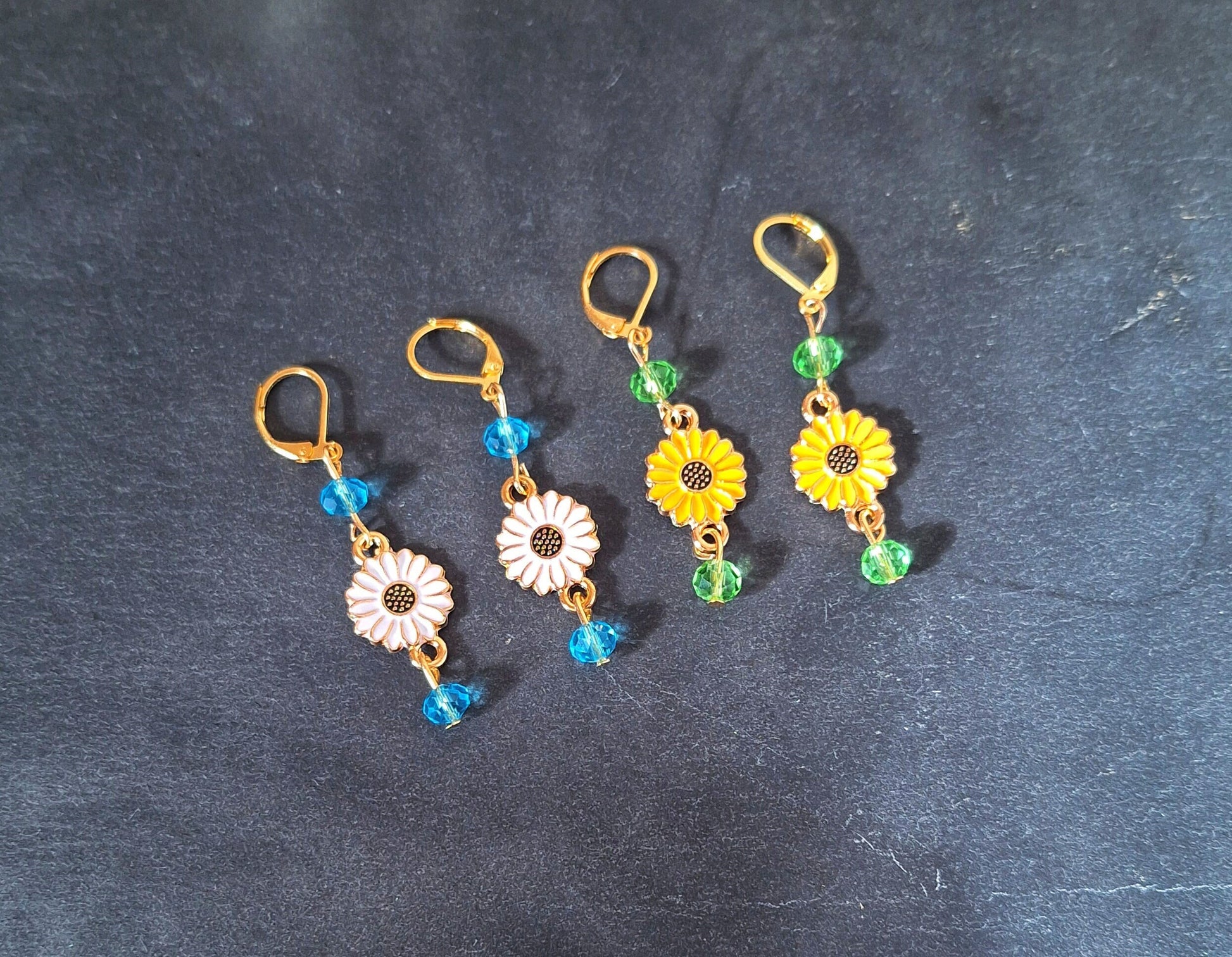 Handcrafted with precision and care, these stunning earrings are crafted from repurposed faceted glass beads, adorned with enamelled flower charms, and suspended from secure gold-plated lever back ear wires. At 50mm in length, they offer a perfect balance of sophistication and subtlety.
