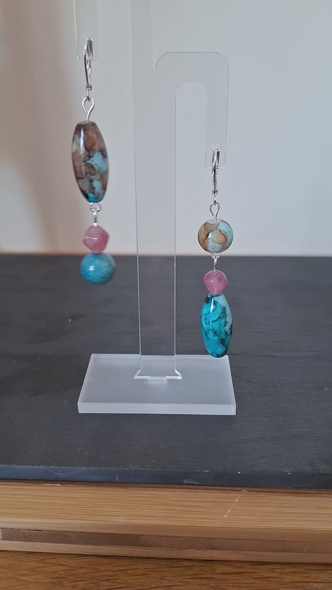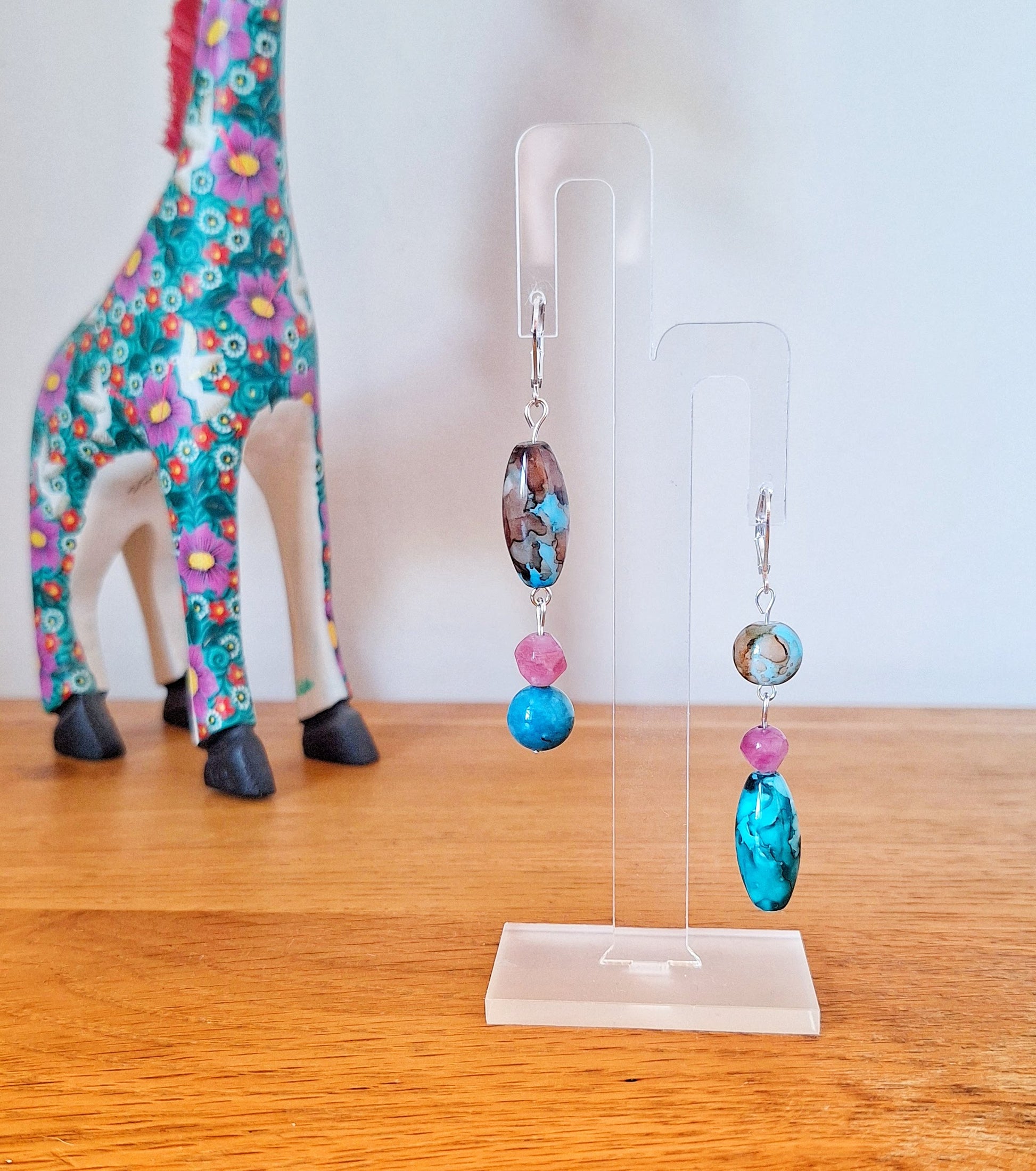 Turn heads with the uniquely mismatched Cora Earrings. Made from repurposed pink tourmaline and glass beads, they dangle an eye-catching 65mm from secure sterling silver lever back ear wires. Eco-friendly and stylish - a win-win!