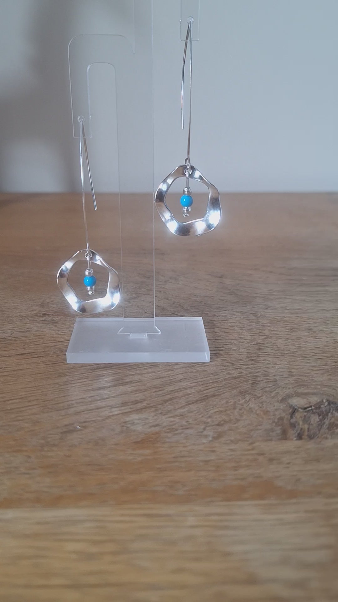 Add a splash of style to your outfits with our Corinne Turquoise Earrings! Crafted with repurposed turquoise stone beads, these lightweight earrings hang elegantly from silver coloured copper french wires for a 62mm drop. Make a statement while being environmentally conscious!