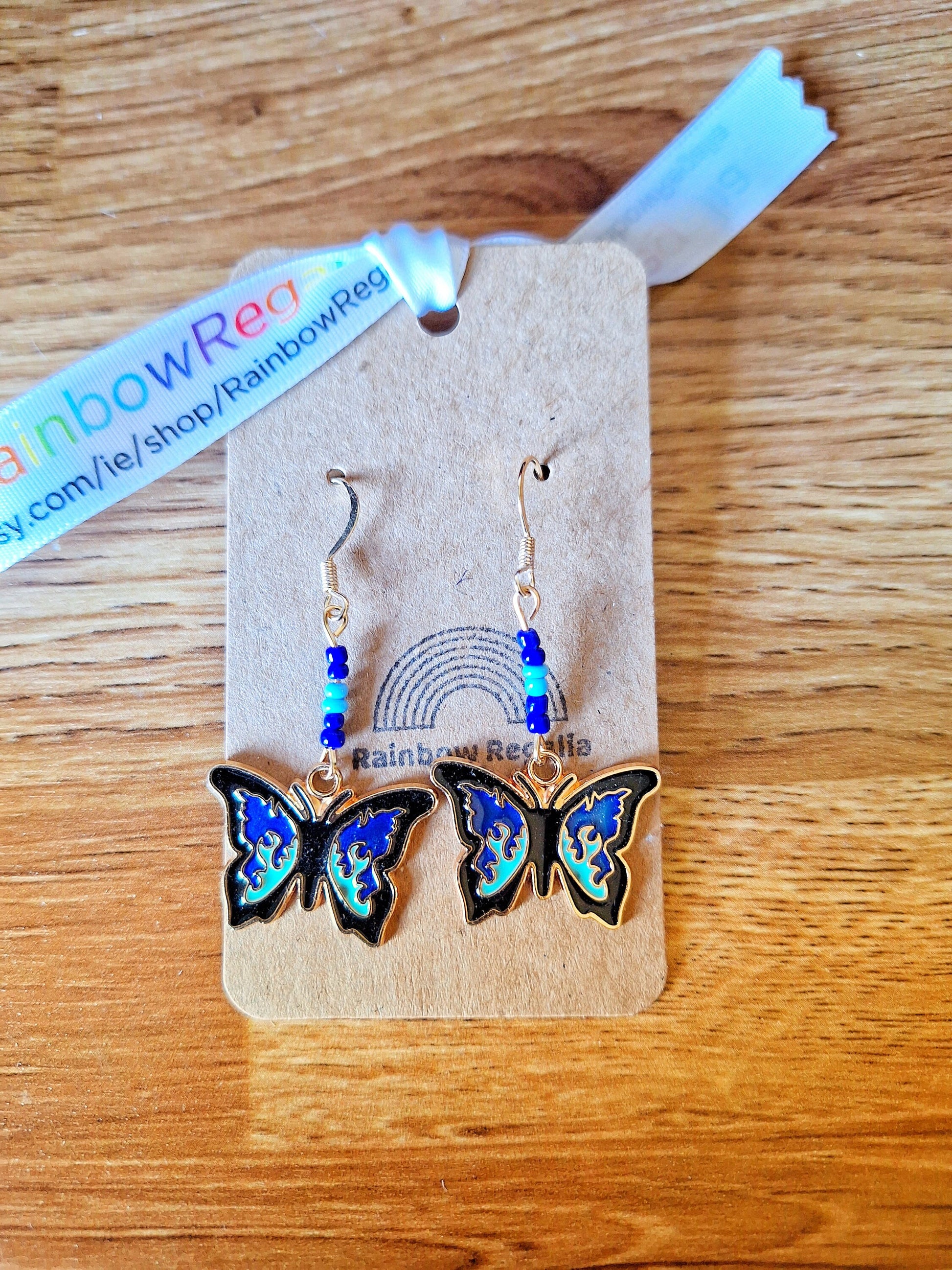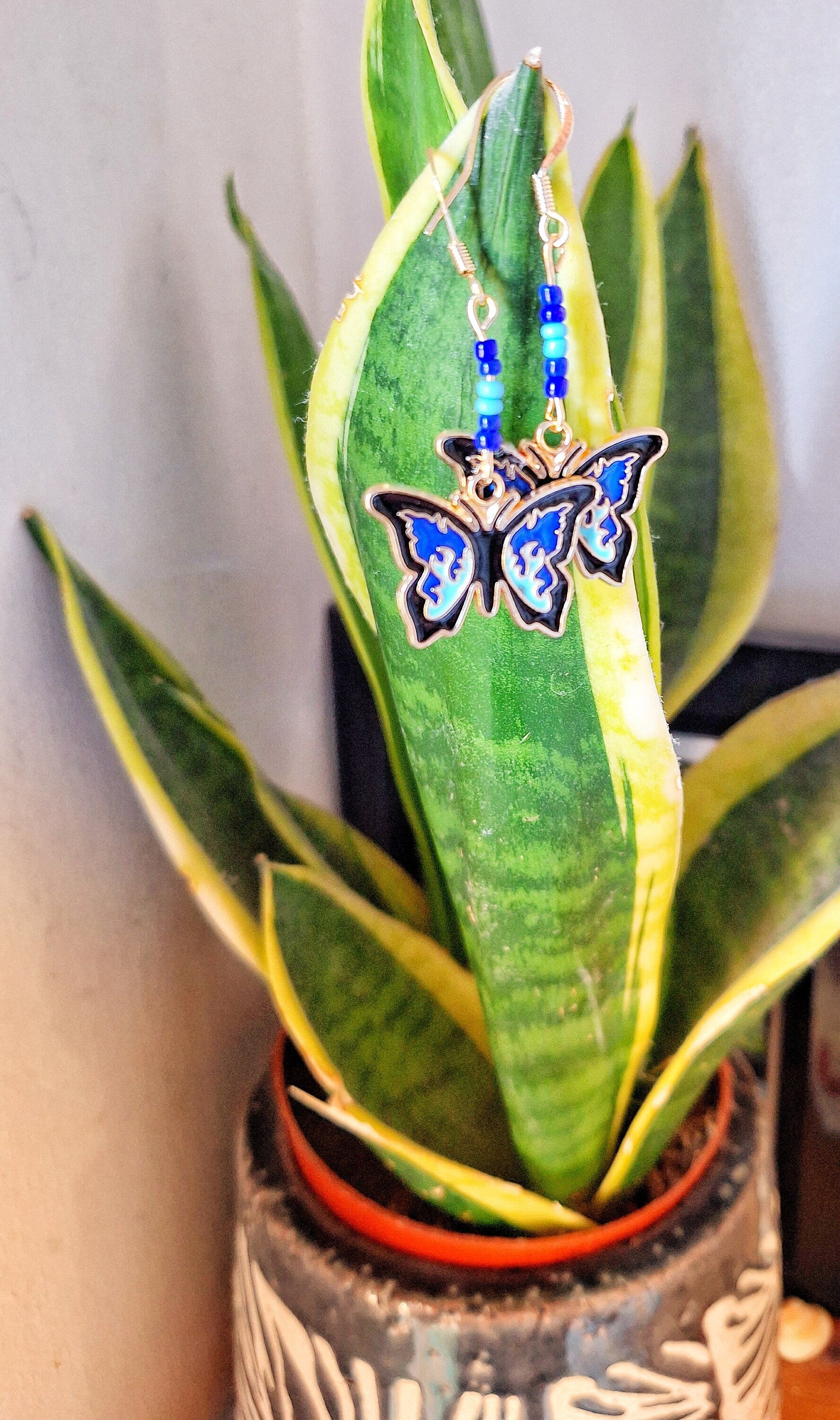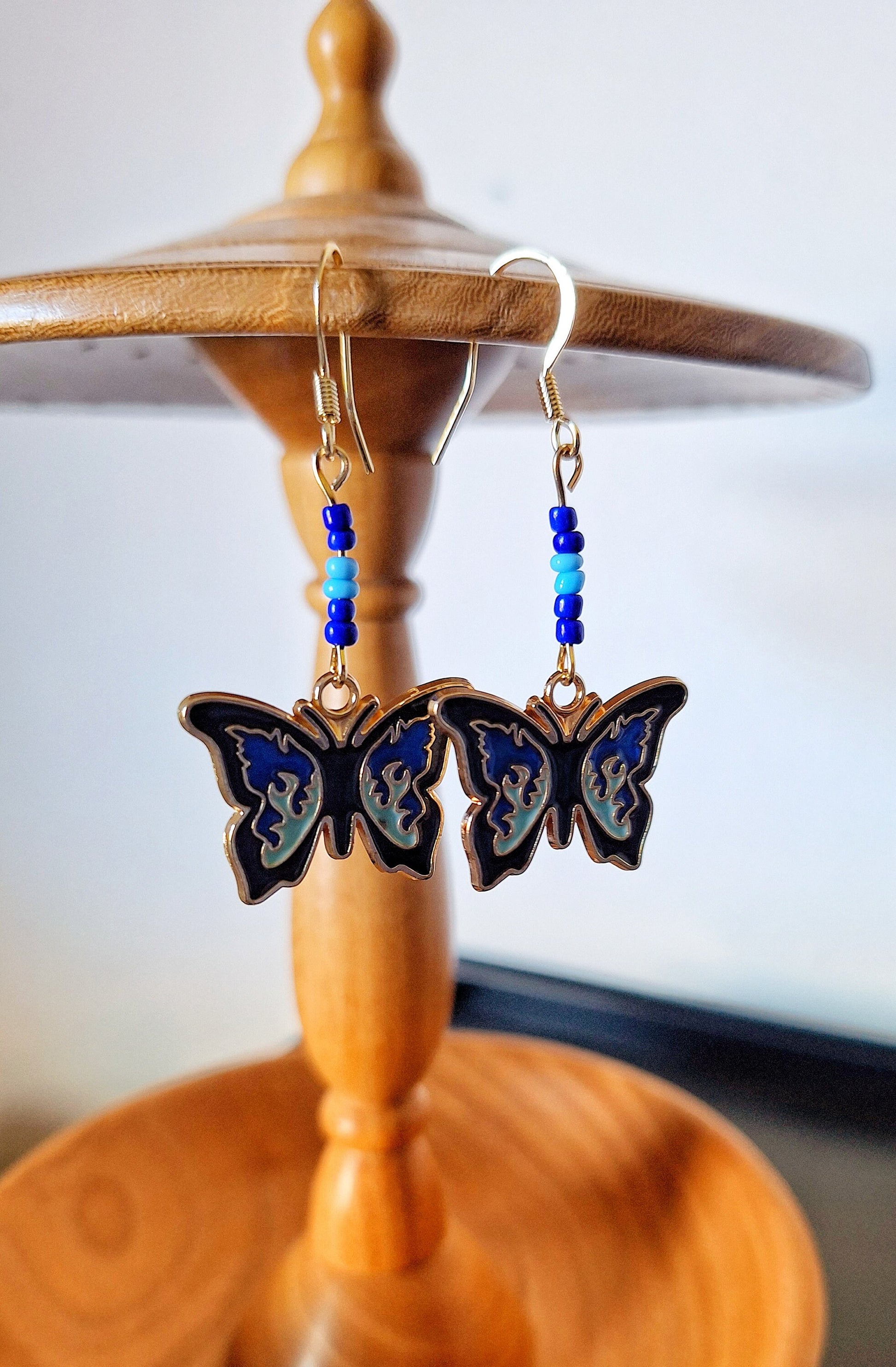 Our commitment to quality is evident in every detail, from the repurposed glass seed beads to the enamelled butterfly charm and ear wires. These earrings are designed to last.