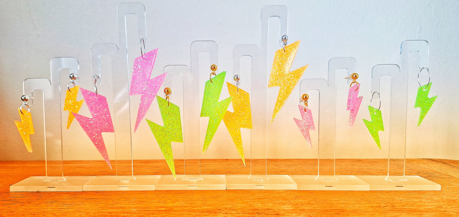 Not for the faint of heart, the Fluorescent Bowie Lightning Bolts are here to make a scene—in the best possible way. Neon-bright, unapologetically bold, and full of Bowie-level attitude, they’re the ultimate accessory for anyone who prefers their earrings with a bit of bite.