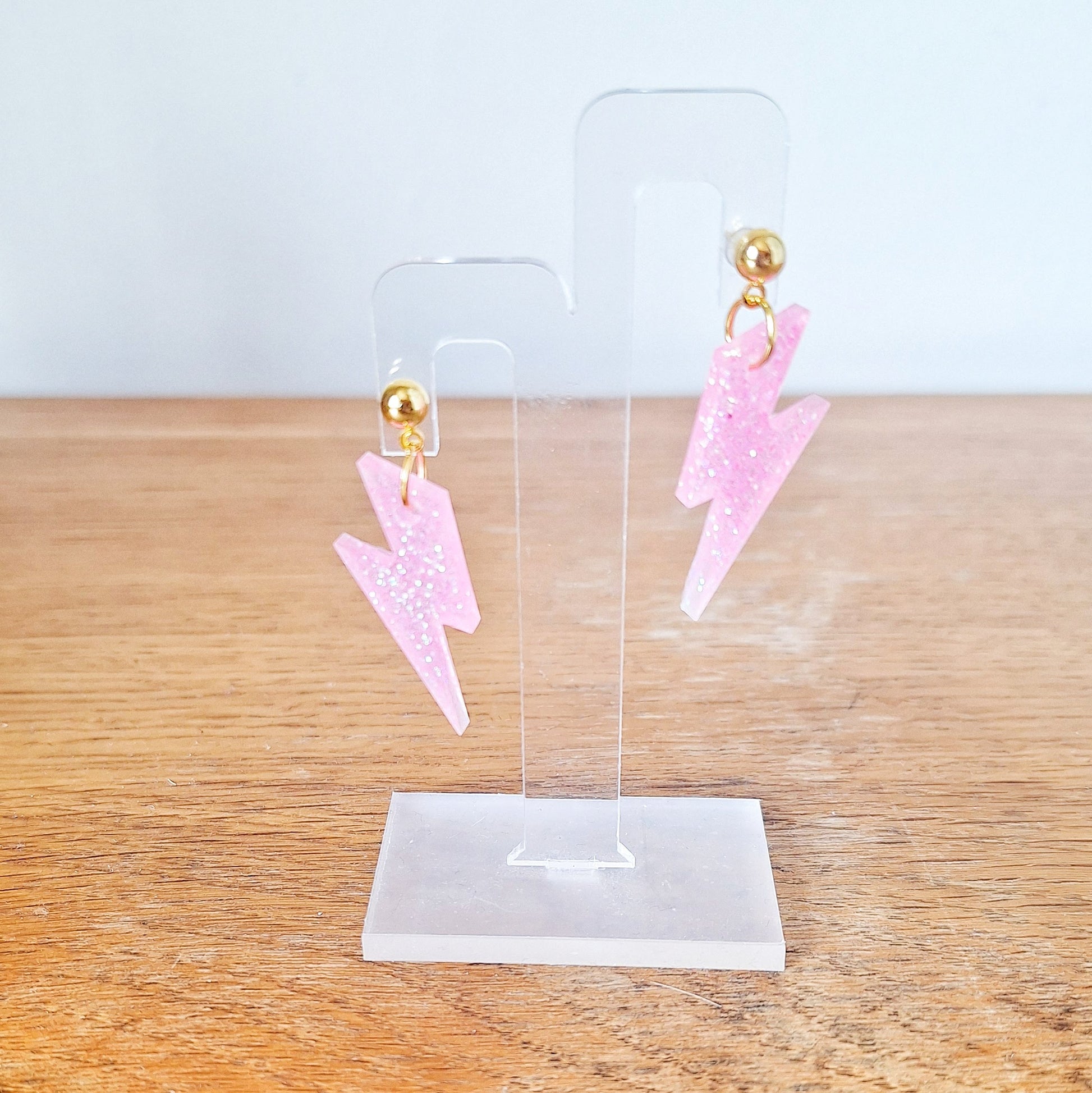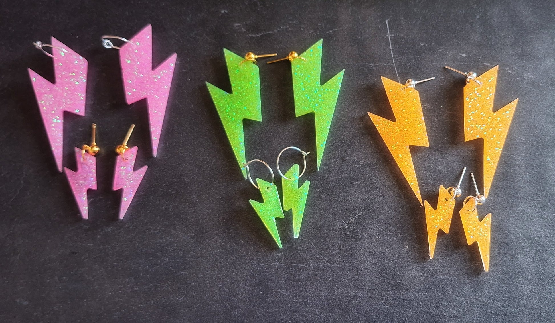 Aladdin Sane earrings, lightning bolt earrings, Bowie earrings, statement earrings, resin earrings, handmade jewellery, unique earrings, quirky jewellery, gold hoop earrings, silver hoop earrings, handmade earrings Ireland, one of a kind earrings