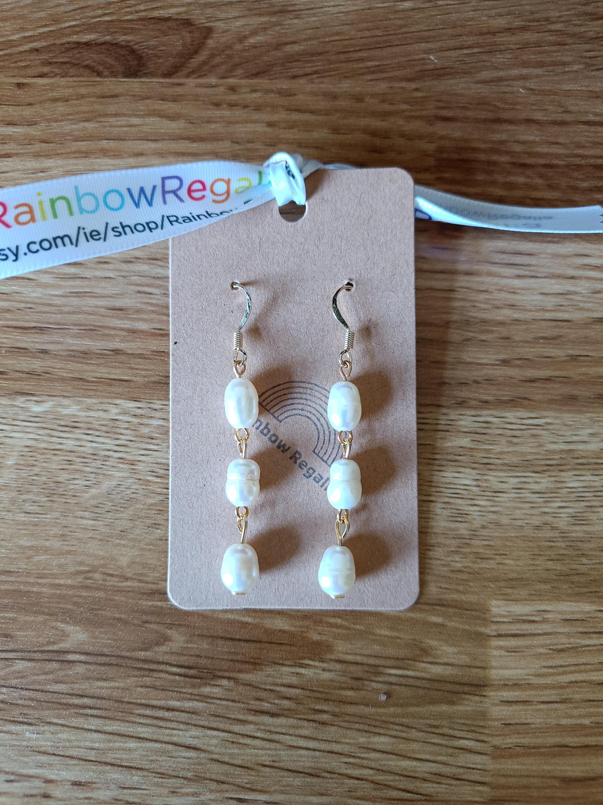 Expertly crafted from repurposed freshwater pearls, these drop earrings measure 50mm in length and are suspended from elegant gold-plated ear wires. Elevate any outfit with their timeless beauty and sustainable design.