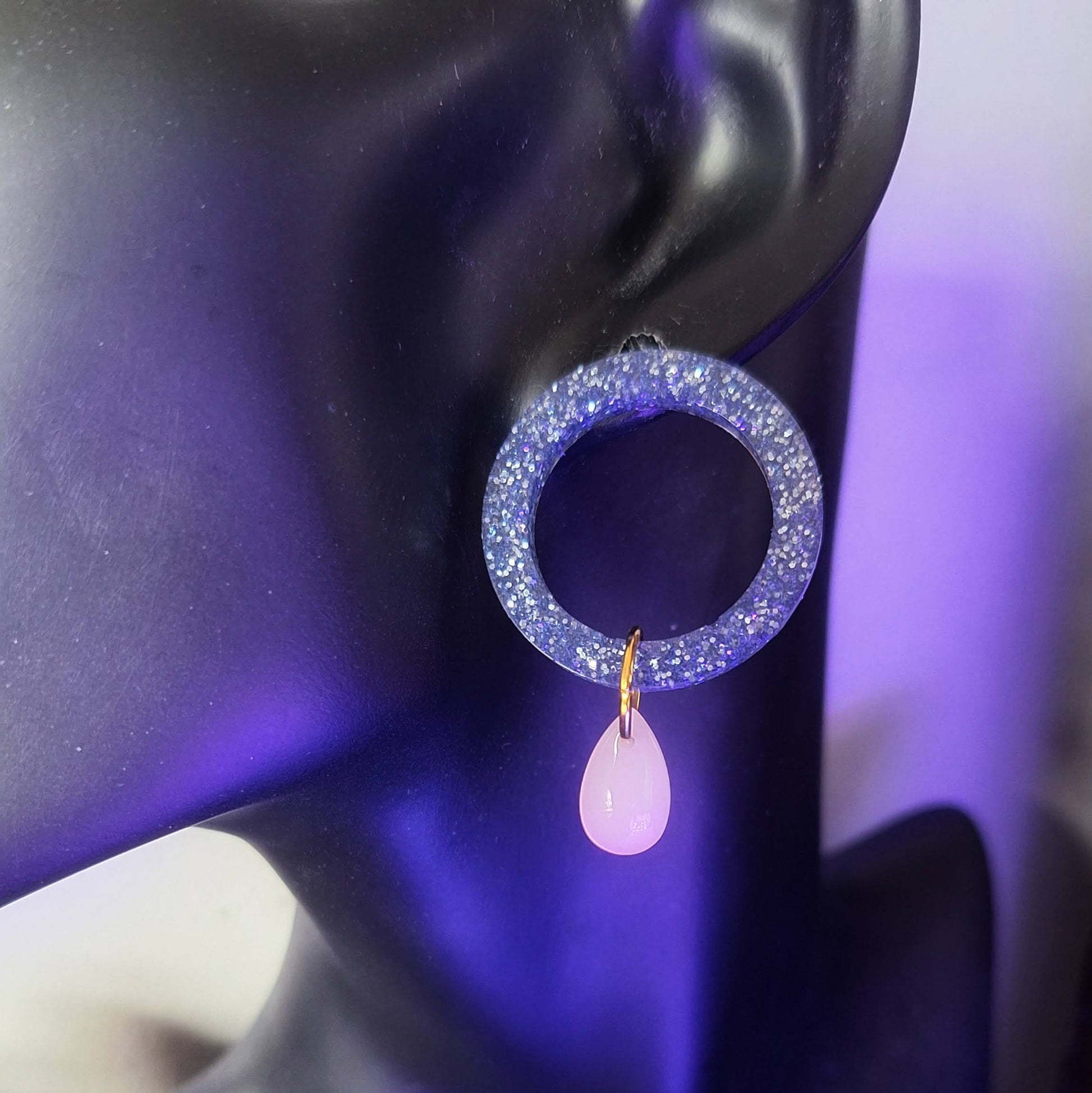 The Harley Halo Earrings are like the cool friend who shows up late to the party but steals the show anyway. Made with shimmering glitter resin and paired with repurposed glass teardrop beads, they’re a dazzling mix of sass and sustainability.