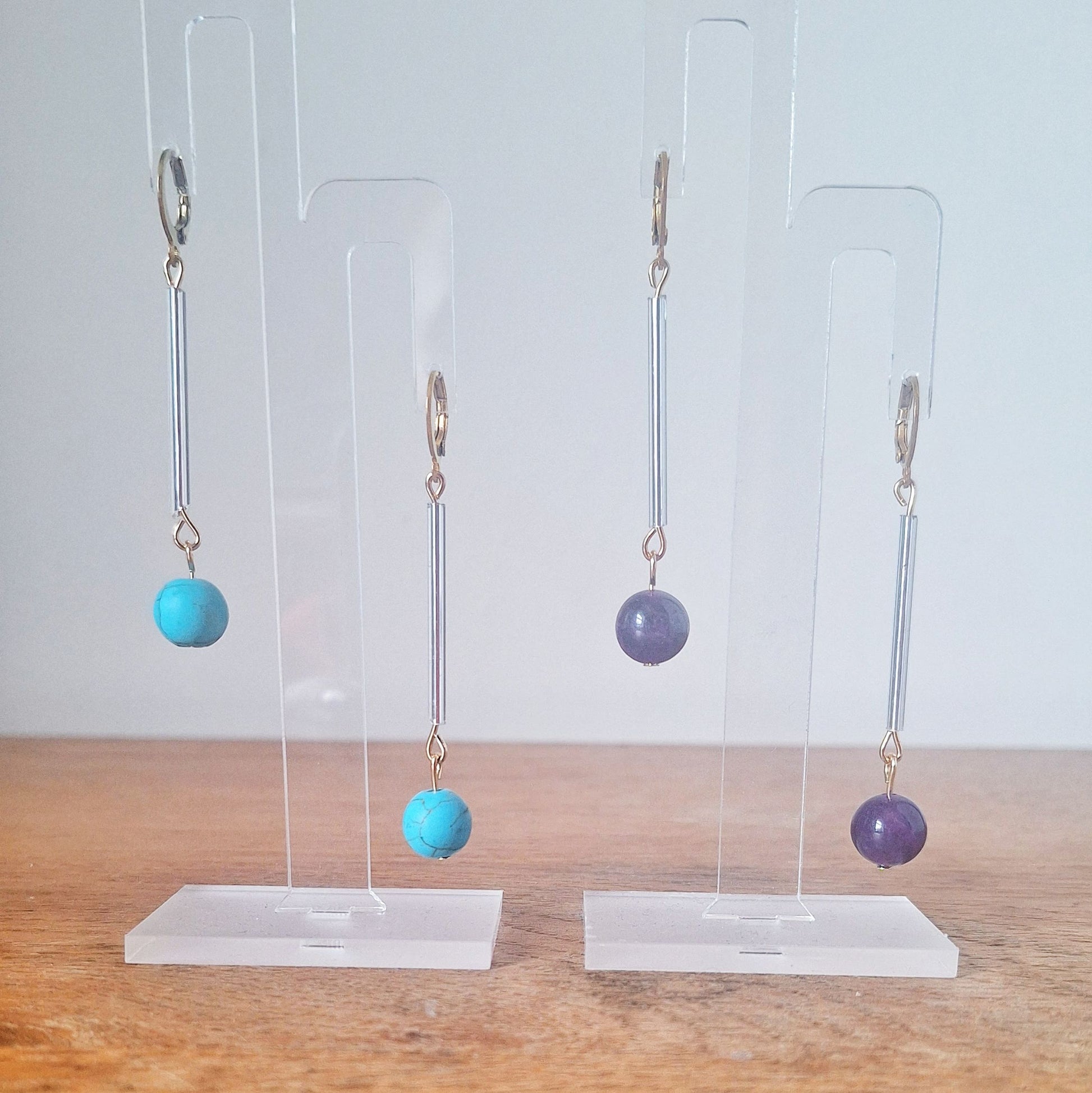 Say hello to the Harper Tube Earrings – all long lines, luxe vibes, and just the right amount of drama. Handcrafted using repurposed glass tube beads (because we love a bit of sustainability with our sparkle), and paired with either dreamy amethyst or fresh turquoise beads.