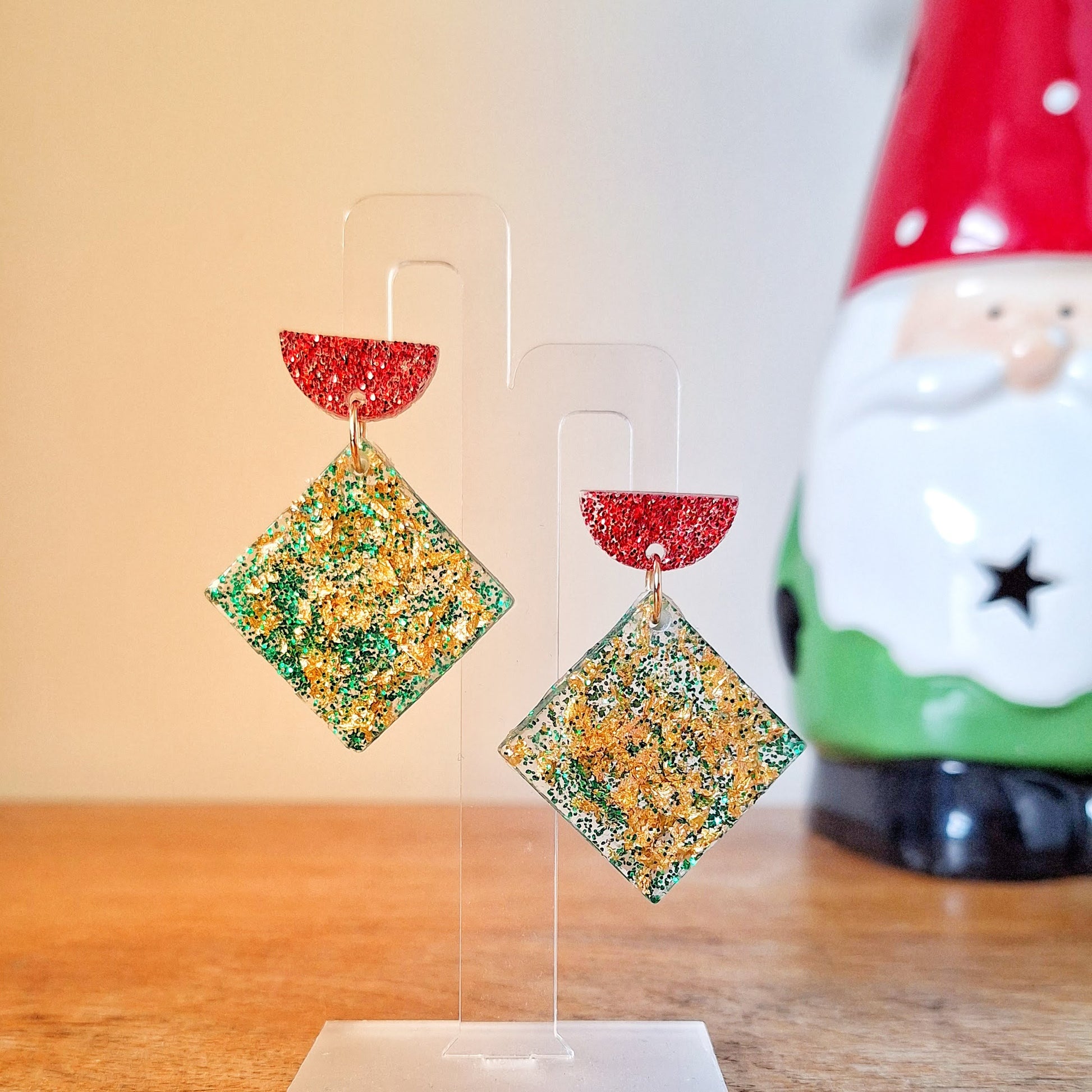 If Christmas had an official earring, this would be it. Say hi to our Holly Green & Red beauties – glittering little show-offs packed with real gold leaf (yes, darling, actual gold) and a festive flurry of glitter, all swirled into rich, glossy resin.