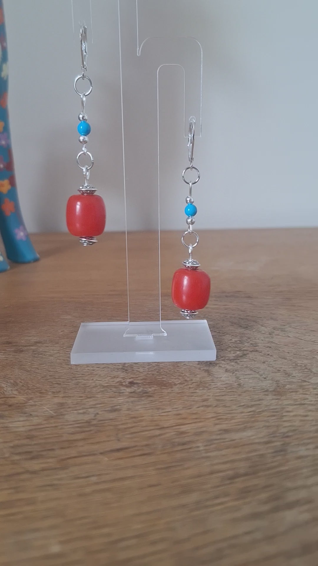 Add a touch of vintage joy to your style with our repurposed acrylic and turquoise earrings. The secure silver ear wires make them perfect for everyday wear. Embrace the eclectic with these unique red and blue beauties!