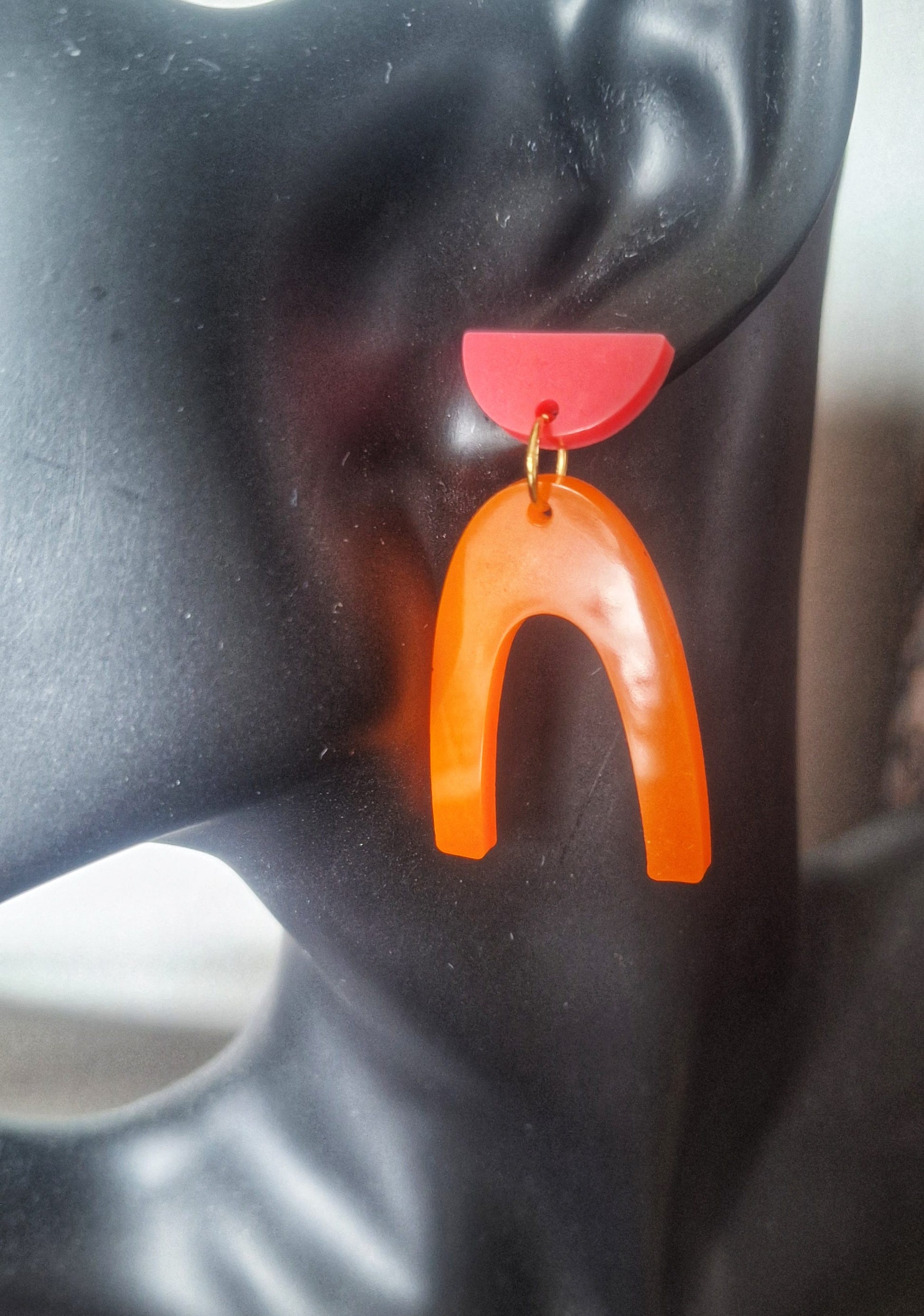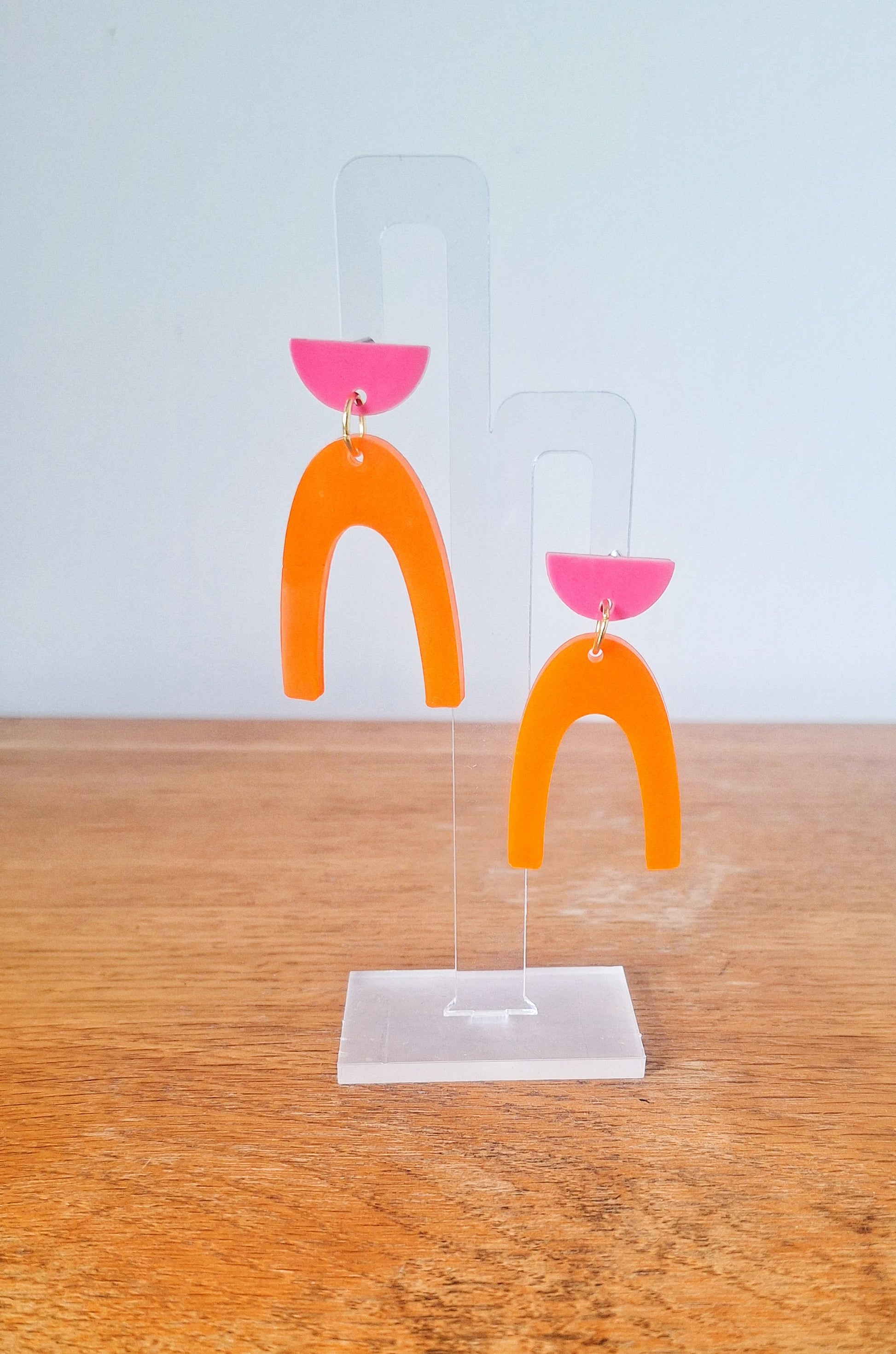 Add a pop of color to your outfit with these Melissa Rainbow Earrings! Handmade from resin, each pair is one-of-a-kind with its own unique mix of dyes. Measuring 50mm in length, they feature a stainless steel stud post for comfortable wear. Hypoallergenic for all-day style.
