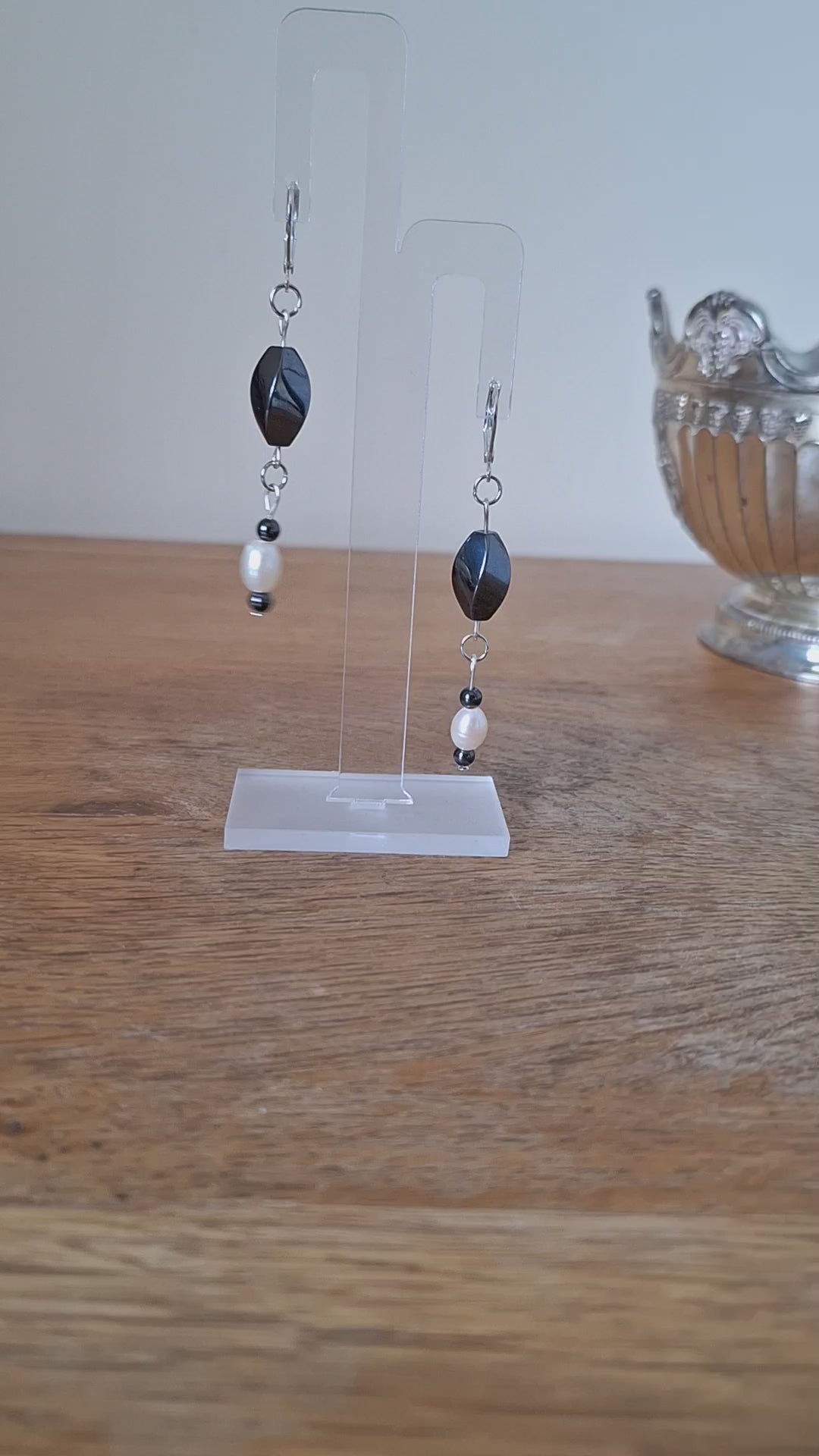 Embrace the elegance of our Paige Pearl and Hematite Earrings. Crafted from repurposed natural hematite and freshwater pearls, these 65mm drop earrings exude sophistication. The sterling silver lever back ear wires add a touch of luxury. Perfectly combining the modern birthstone for March, hematite, and the timeless birthstone for June, pearls.