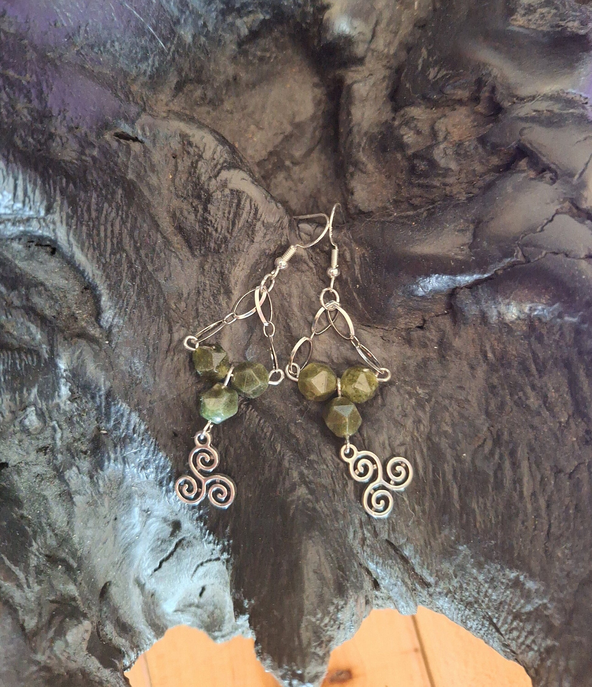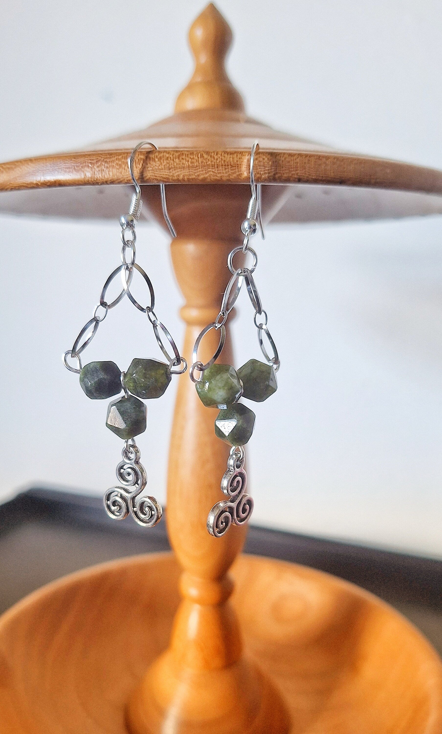 At the heart of it all? A Celtic triskelion charm, representing constant motion and the glorious chaos of being alive. They dance delicately from lightweight stainless steel chains and are finished with sterling silver ear wires that keep them comfy and secure—so you can move, sway, and spin through your day in style.