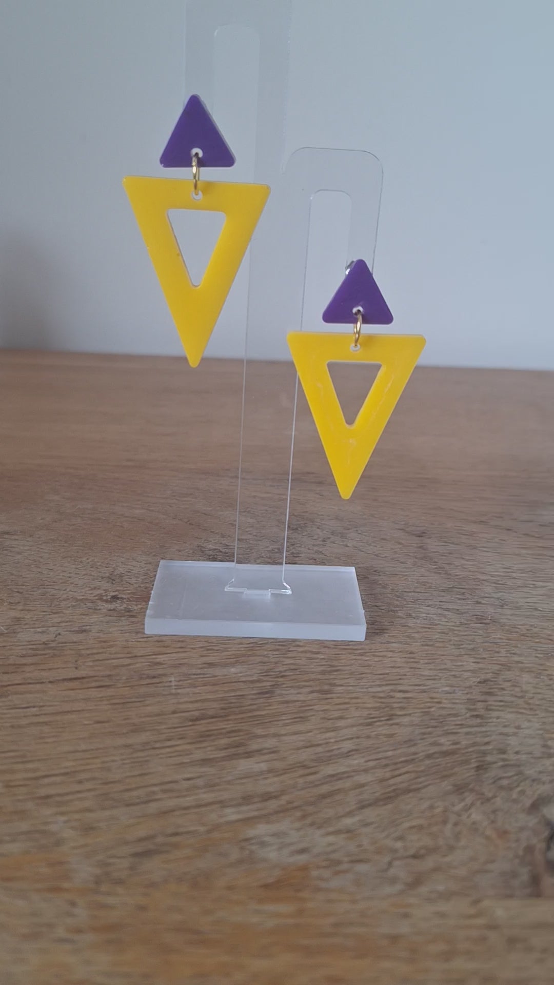 Add a dash of eccentricity to your wardrobe with our 80s inspired Sharon Triangle Earrings! Each set is one-of-a-kind as the hues are mixed by hand. These eye-catching earrings are handcrafted from resin and come with a hypoallergenic stud post. A daring and amusing way to spice up any attire!