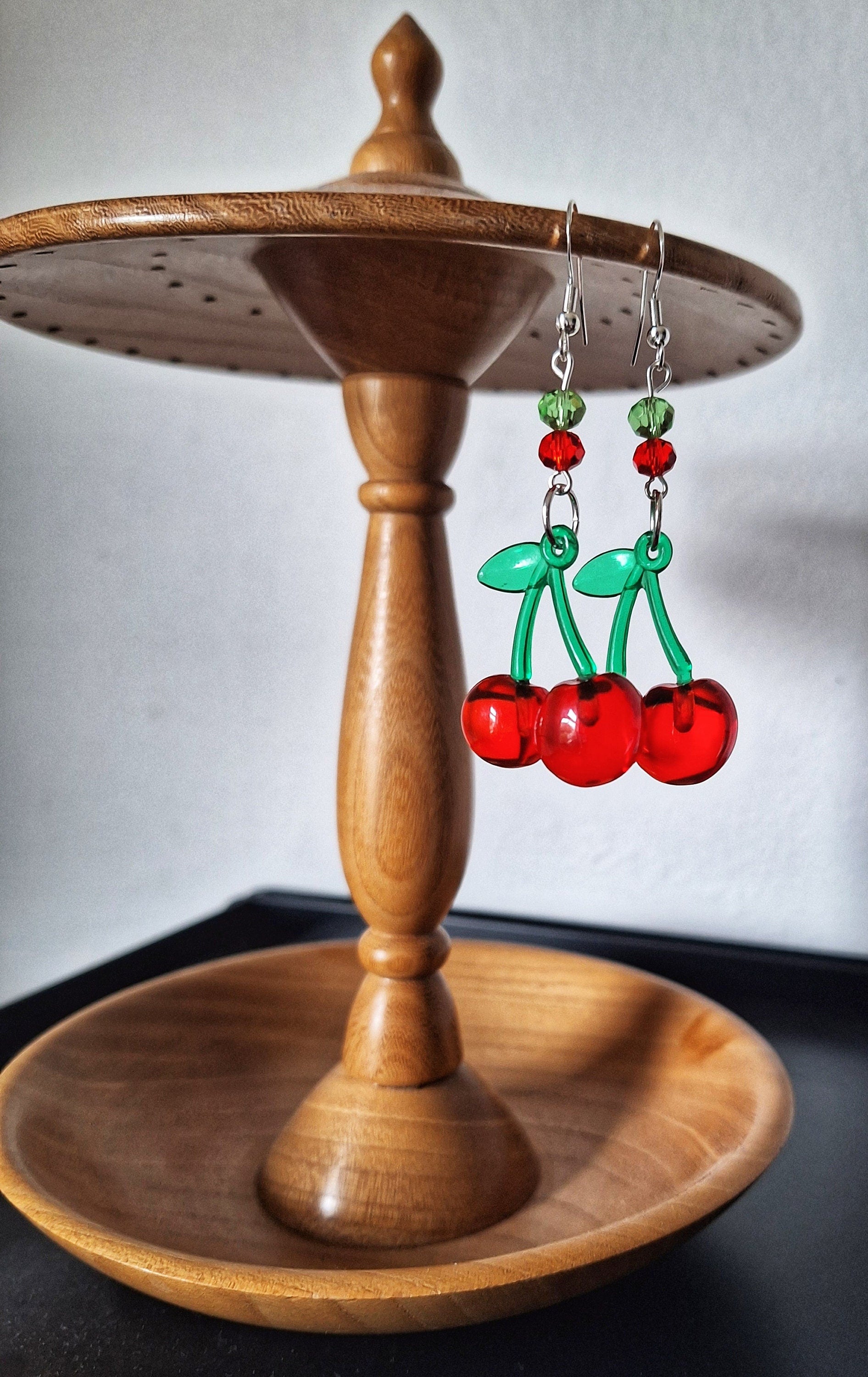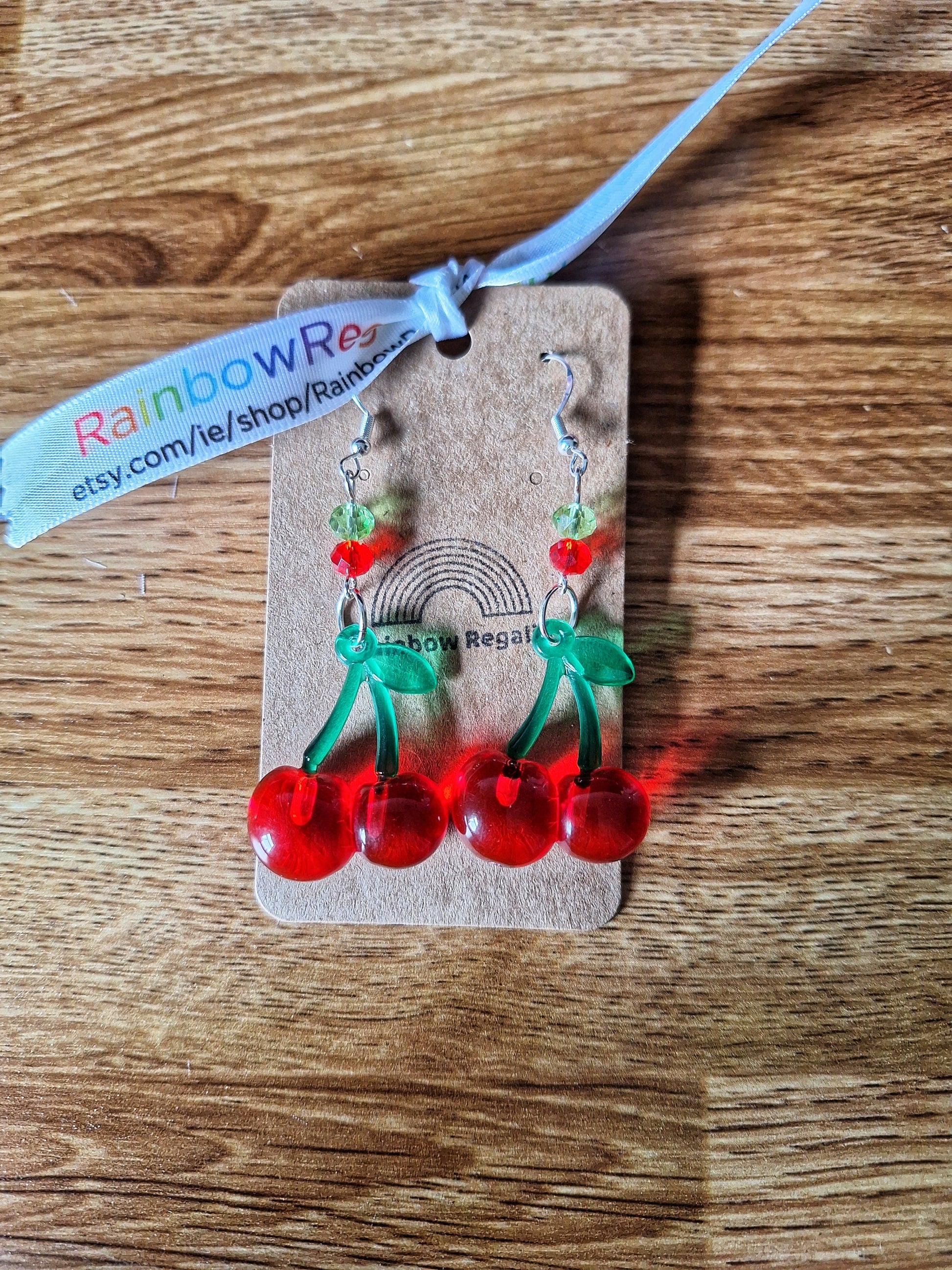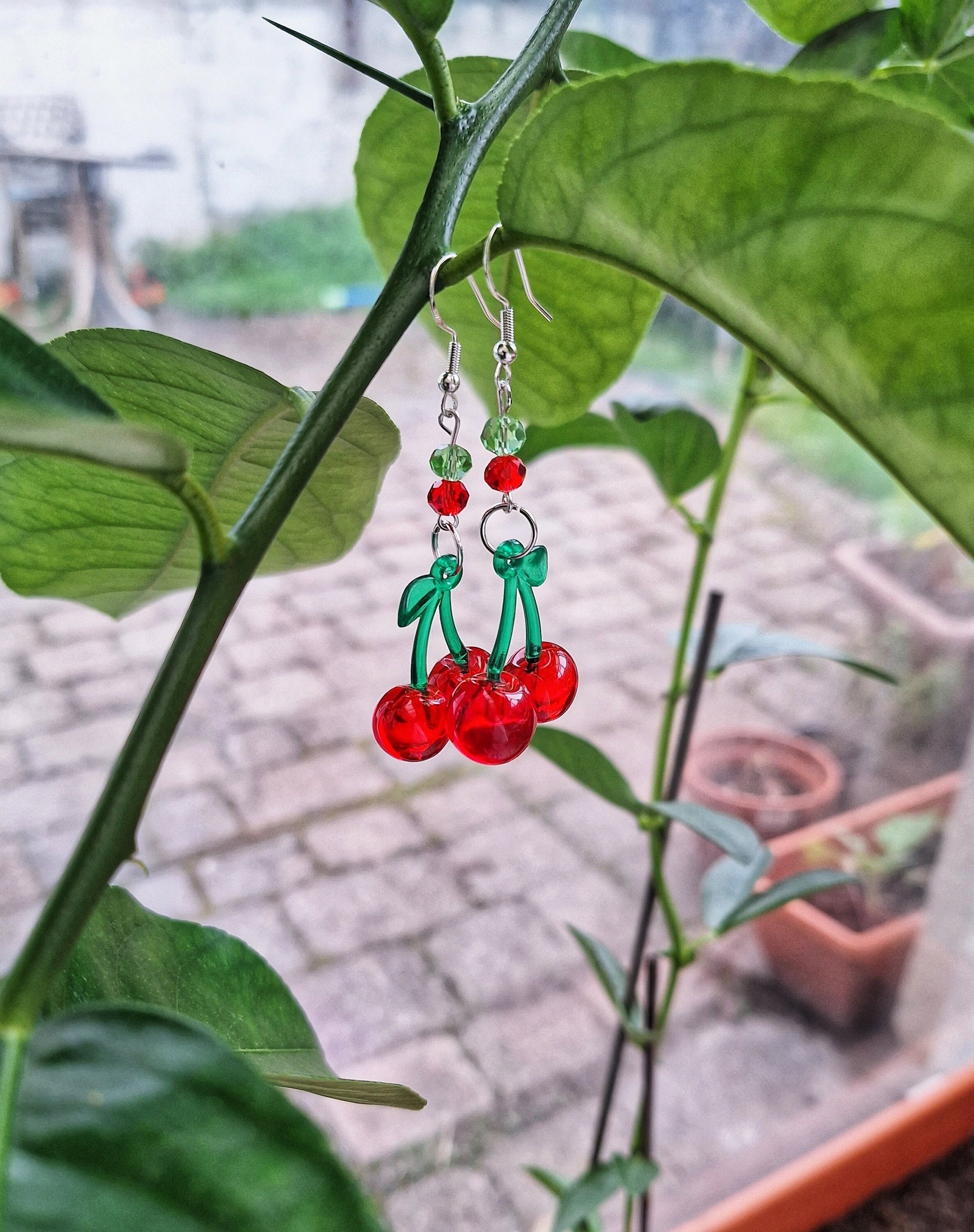 Elevate your jewellery collection with these repurposed faceted glass bead earrings, where elegance meets fruity charm. Make a statement that resonates – order now and wear your commitment to both fashion and the delightful symbolism of cherries with pride!
