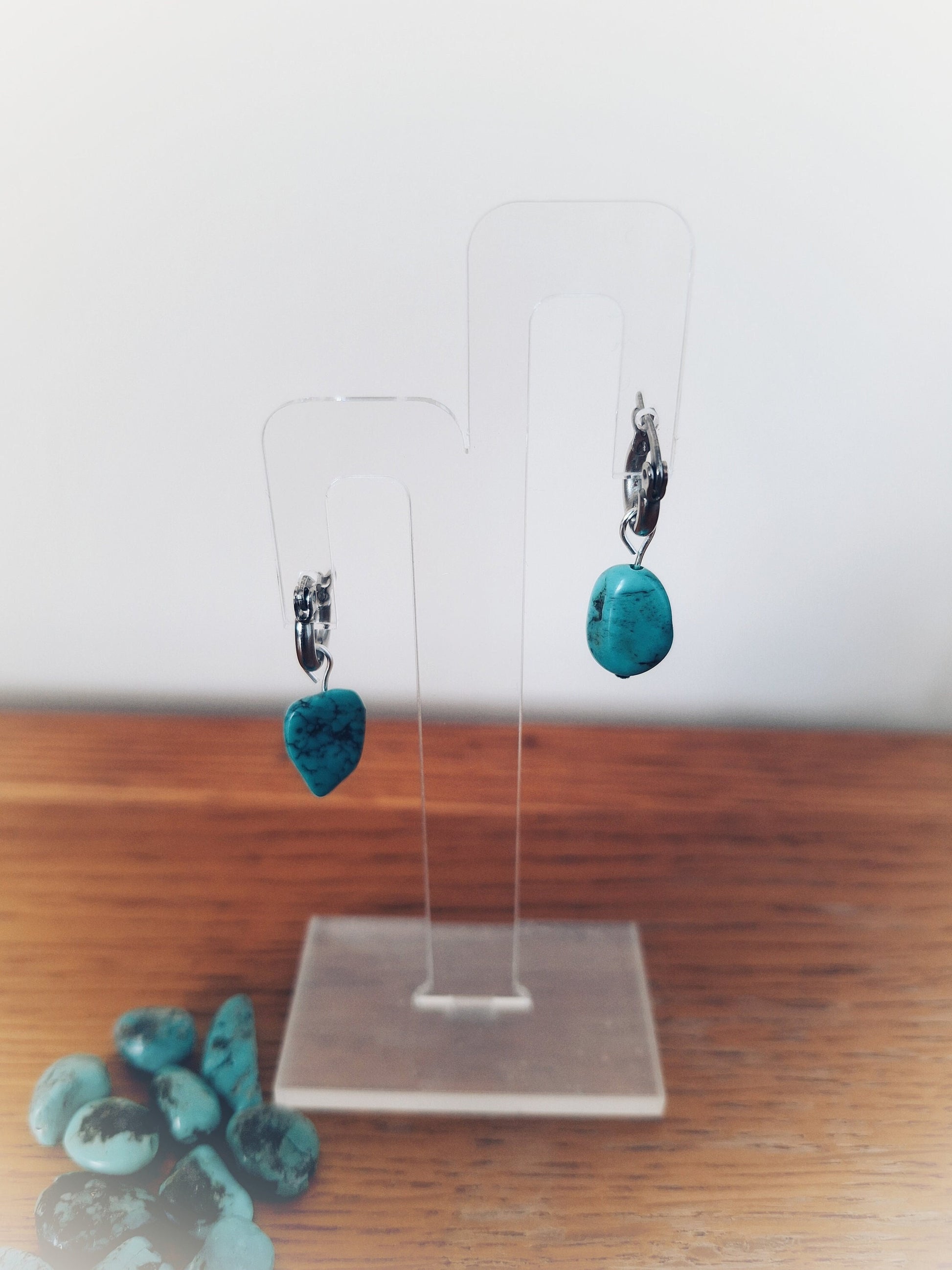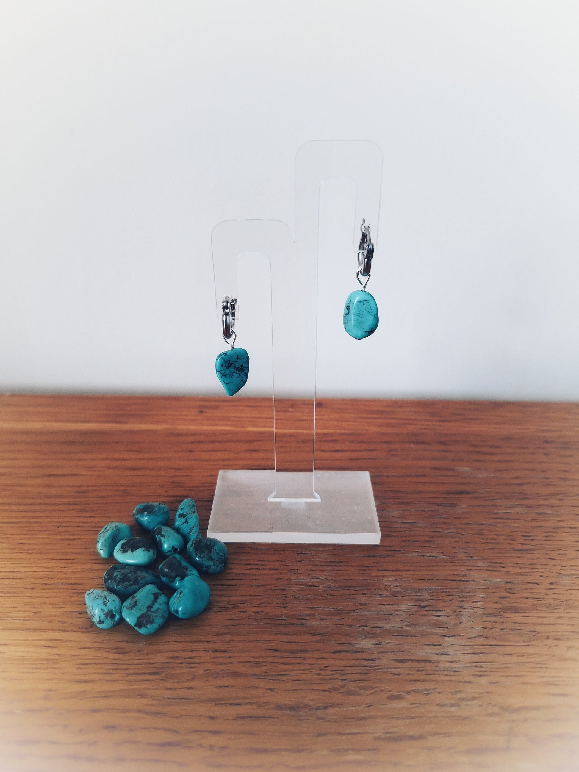 Indulge in luxurious elegance with the Skye Turquoise Huggies. These stylish earrings feature repurposed genuine turquoise pieces for a natural and unique touch. The 10mm stainless steel hoops offer modern durability, while the huggie style ensures a snug and comfortable fit. Embrace the perfect blend of contemporary style and timeless beauty with these versatile and eye-catching earrings.
