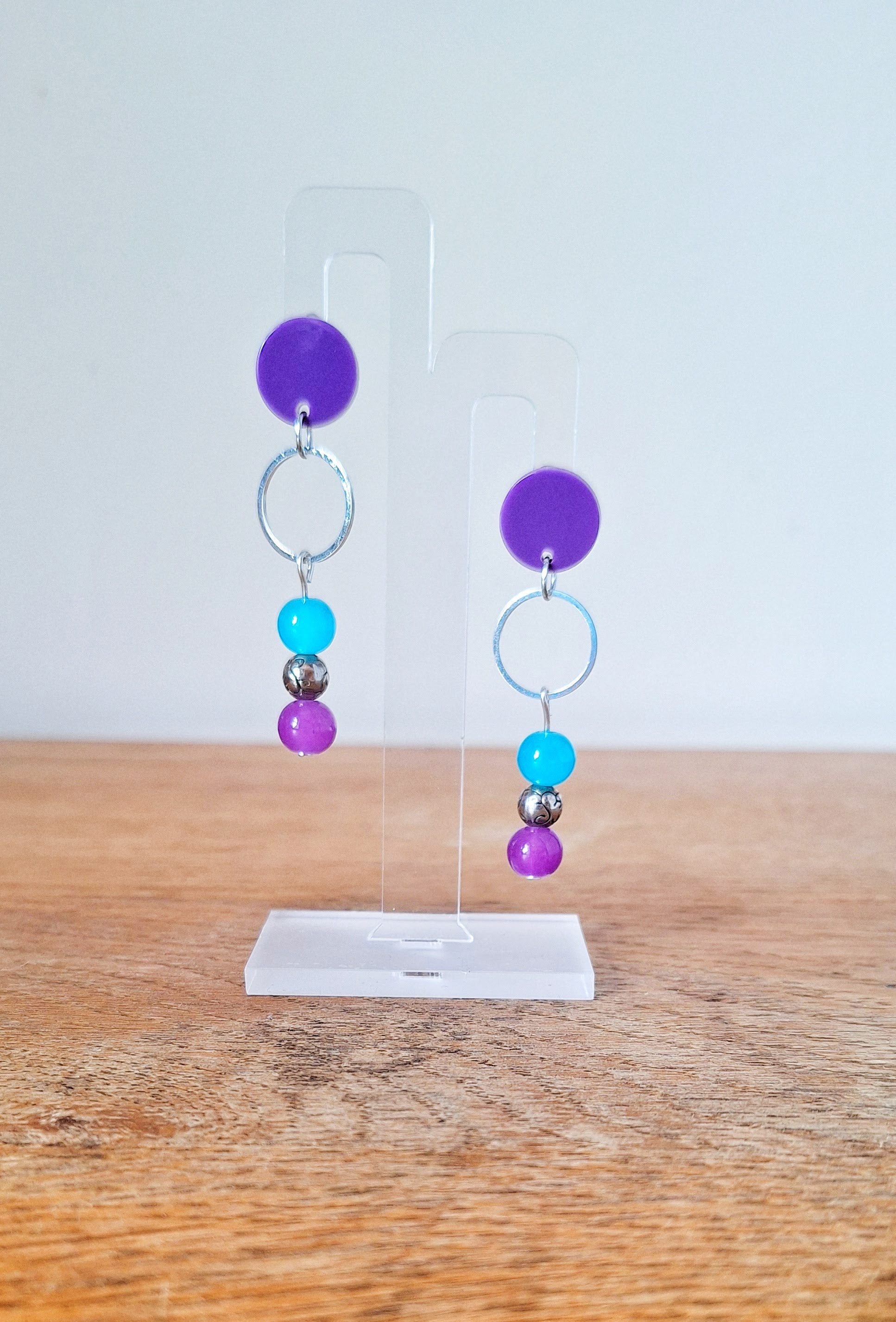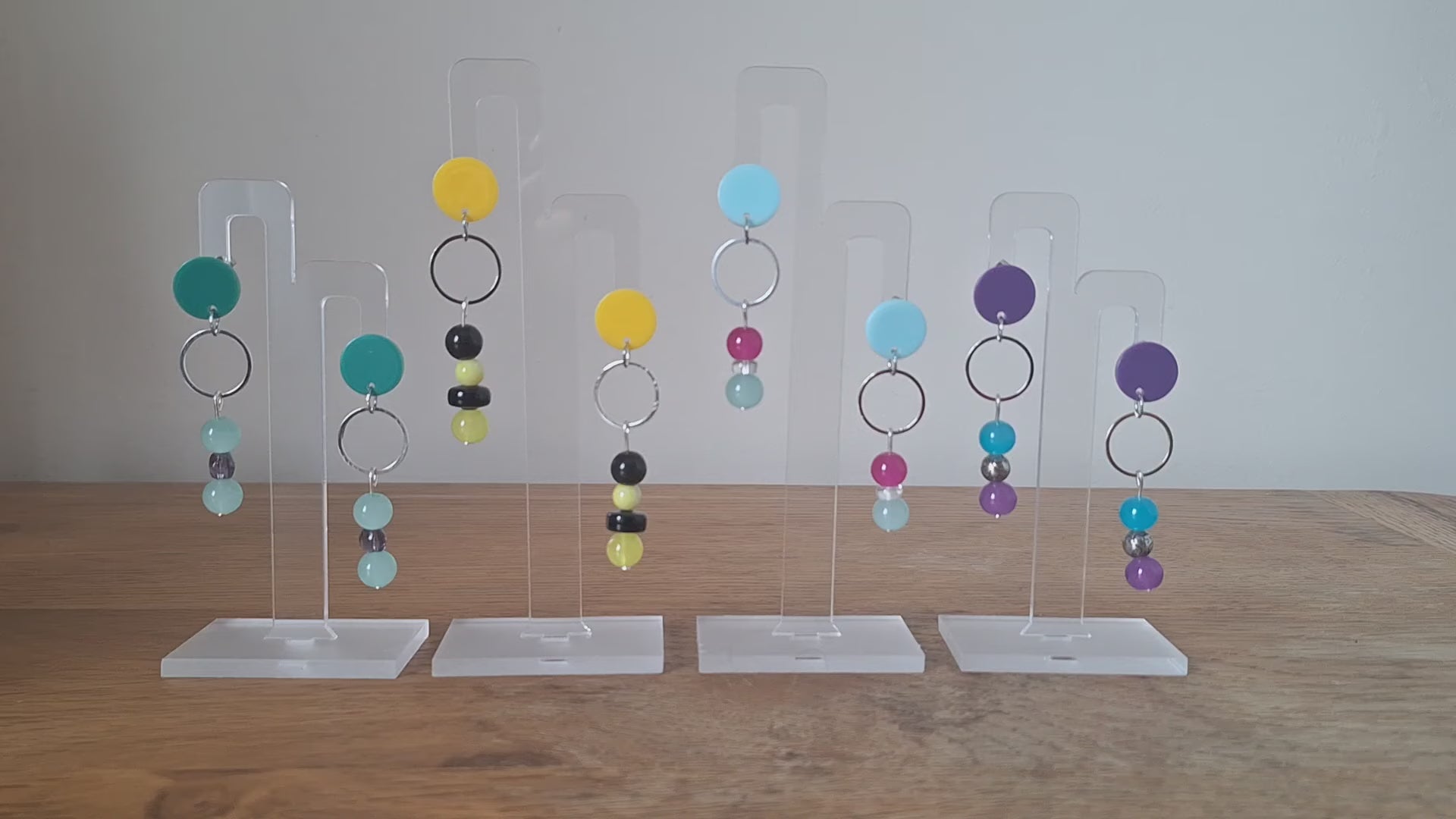 Create a statement with our Sonia Bright Earrings. These one-of-a-kind pieces are handmade using repurposed glass beads and suspended from acrylic and stainless steel studs. With a 60mm drop and a variety of colors to choose from, each pair is special and uniquely yours. Make a fun fashion statement while being eco-friendly!