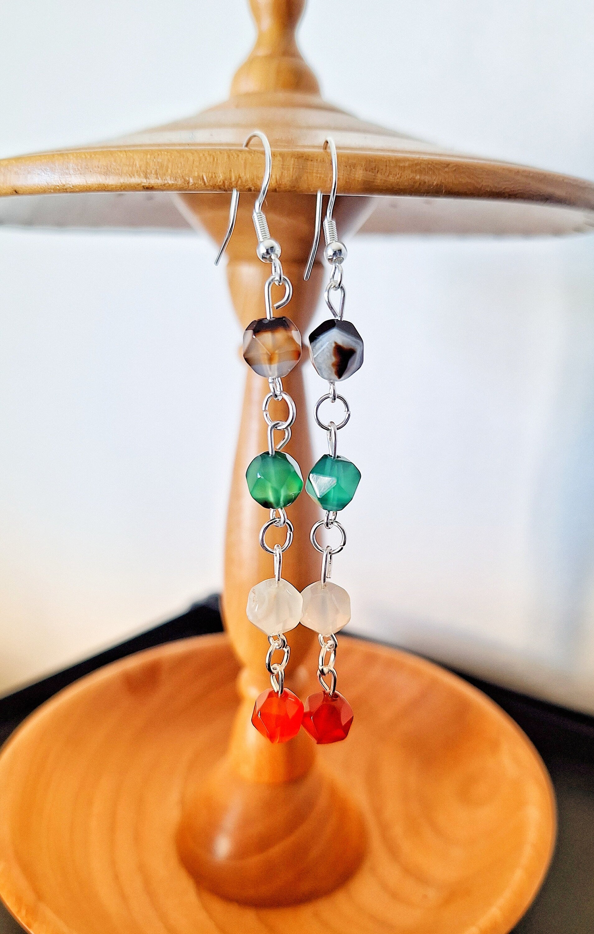 Our commitment to quality is evident in every detail, from the repurposed tourmaline beads to the meticulously designed chain and sterling silver ear wires. These earrings are designed to be cherished.